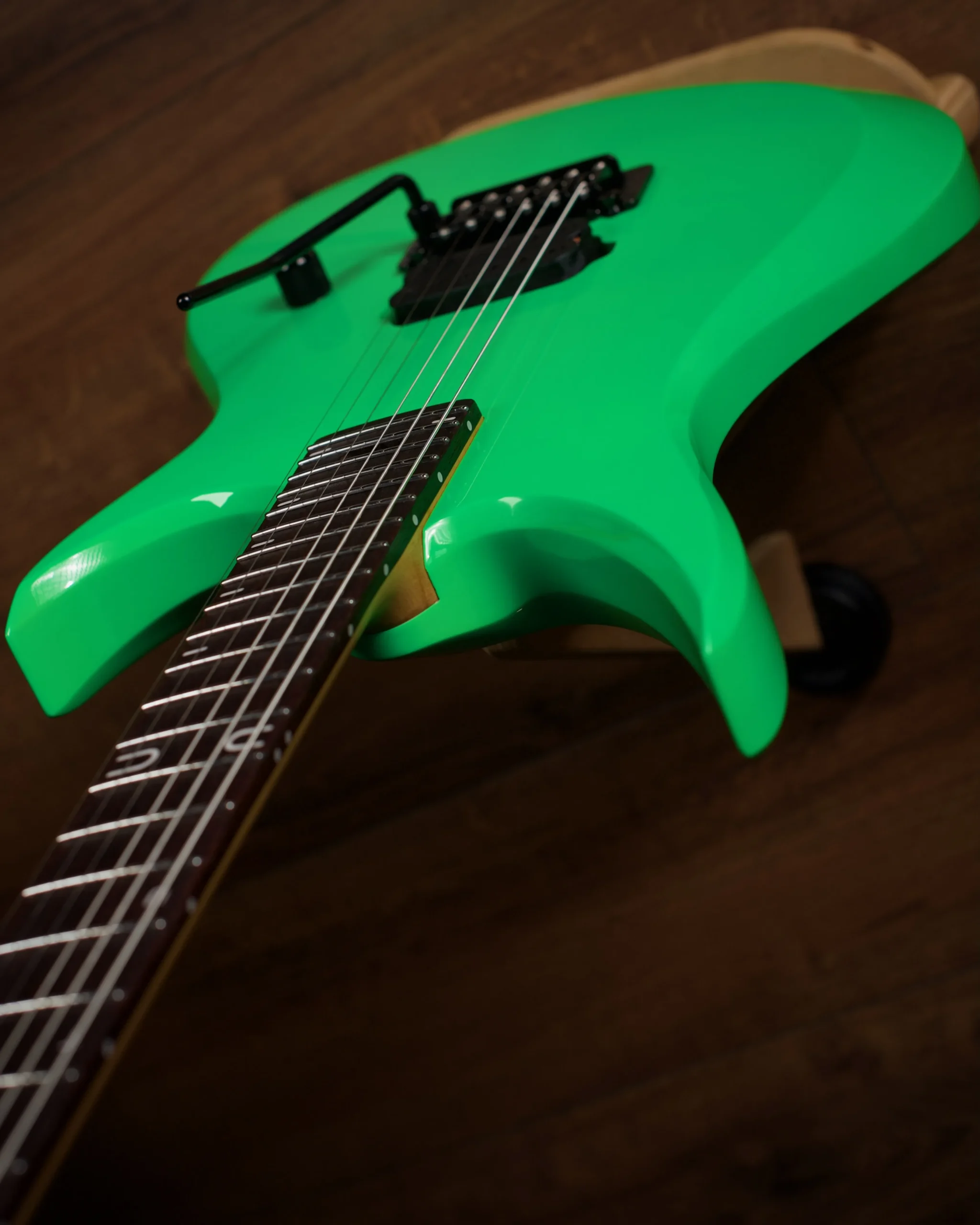 Conçue comme une superstrat moderne, elle associe confort, accès total aux aigus, et équilibre sonore.